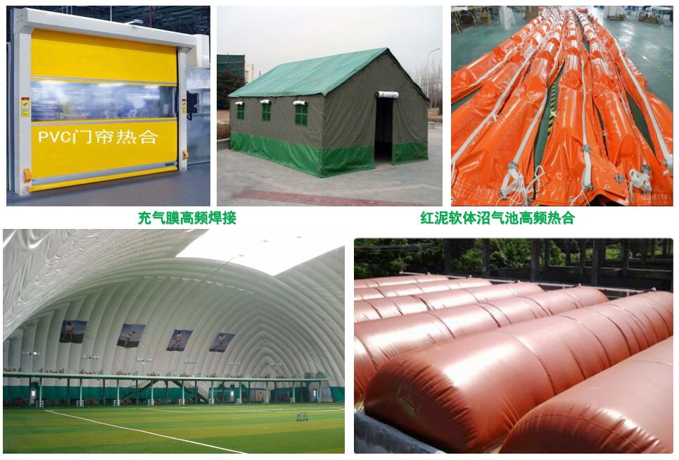 C型膜結構高頻焊接機應用于:戶外膜結構、露天帳篷布焊接、篷布篷房、遮陽篷、拉漲膜、索膜、PVC涂層布焊接、膜結構拼接、廣告噴繪布焊接、帆布拼接、 遮陽篷雨篷、帳篷布熔接、充氣船、PVC圍油欄、PVC充氣用品等焊接。